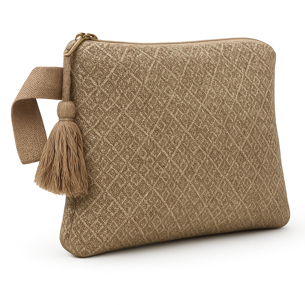 Η χειροποίητη τσάντα Natural Texture του VKLusso ξεχωρίζει για το ανάγλυφο γεωμετρικό της μοτίβο και τη γήινη, ουδέτερη χρωματική παλέτα που συνδυάζεται εύκολα με κάθε outfit. Φτιαγμένη με ύφασμα υψηλής ποιότητας και διακοσμημένη με εντυπωσιακή υφασμάτινη φούντα και φαρδύ λουρί, προσθέτει στυλ και χαρακτήρα στις καθημερινές αλλά και πιο elegant εμφανίσεις σου.