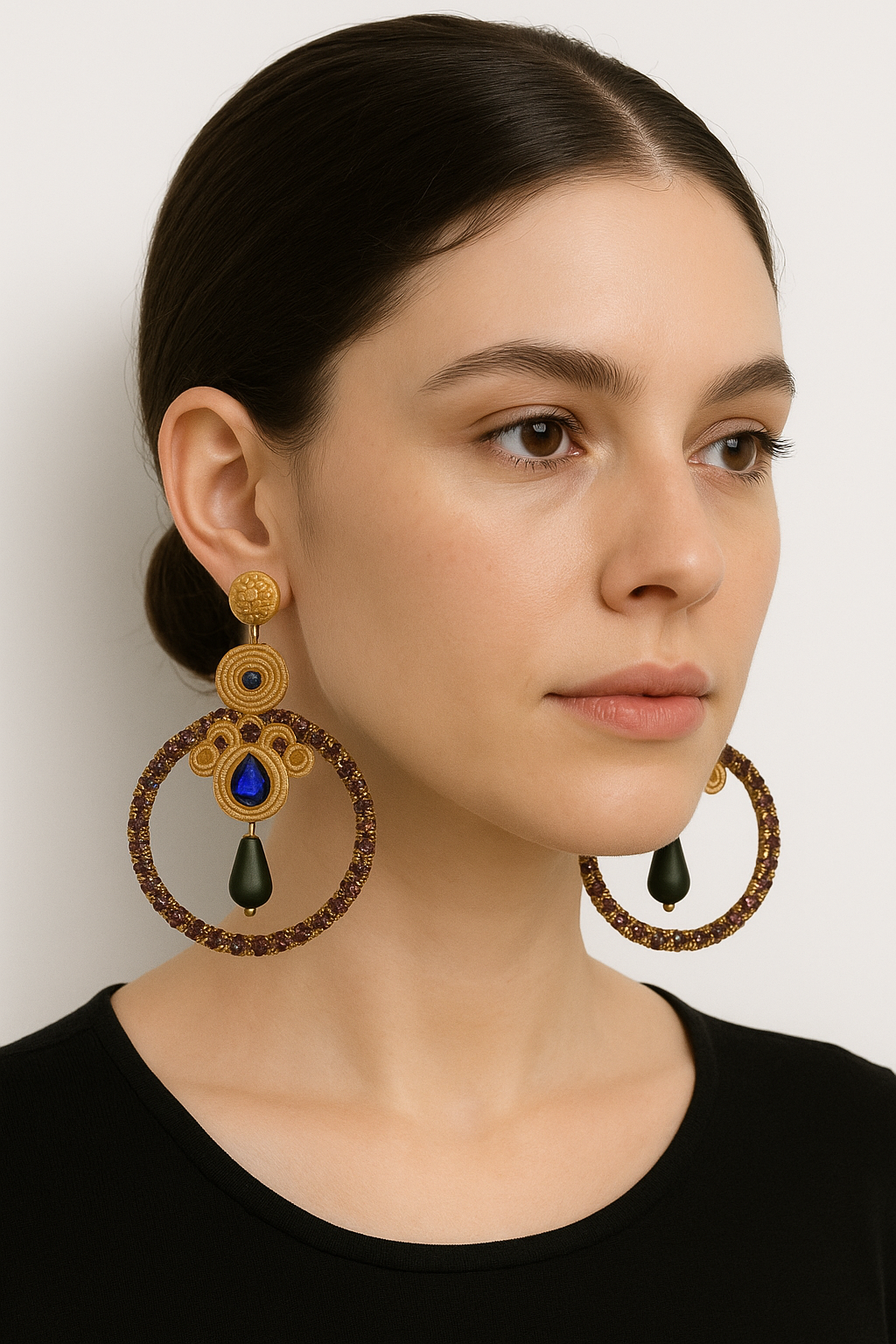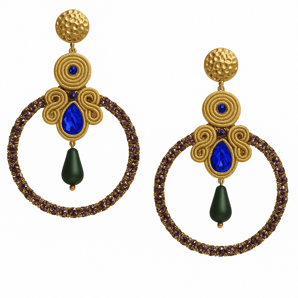 Ένα μοναδικό κόσμημα φτιαγμένο με την παραδοσιακή τεχνική soutache, που συνδυάζει πολυτελή κορδόνια, ημιπολύτιμες πέτρες και καλλιτεχνική λεπτομέρεια. Κάθε κομμάτι είναι αποτέλεσμα αγάπης, υπομονής και δημιουργίας, σχεδιασμένο για να προσθέτει χρώμα, στυλ και χαρακτήρα σε κάθε σας εμφάνιση.